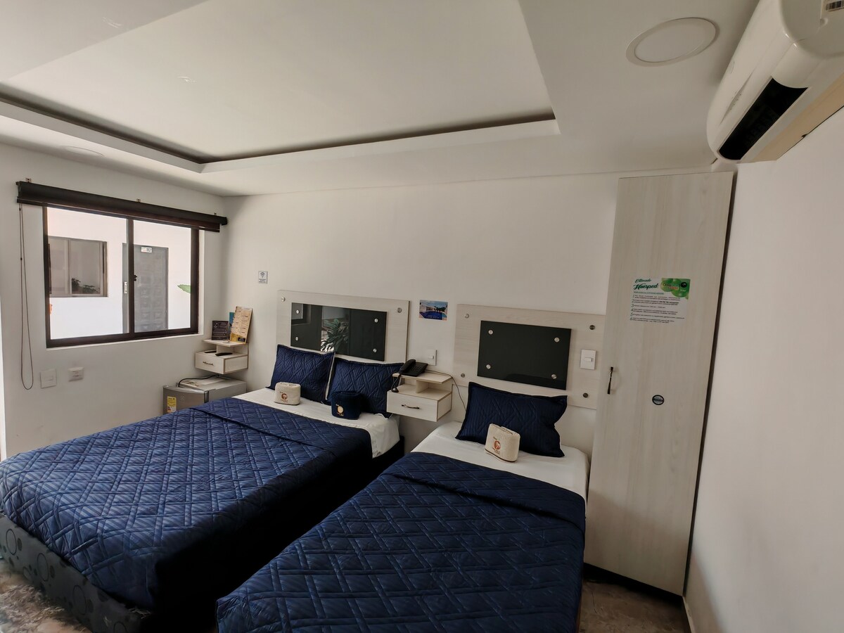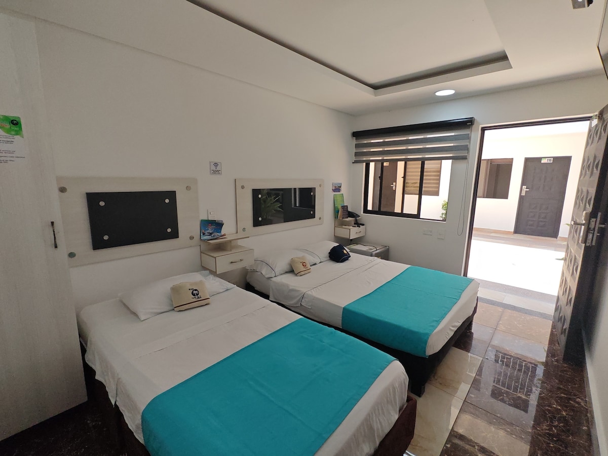 Habitaciones cómodas y amplias las cuales cuentan con aire acondicionado además de baño privado, el servicio se encuentra acompañado de desayuno incluido, acceso a piscina tipo jacuzzi y parqueadero privado. No pierdas la oportunidad de tener una experiencia única con un servicio de calidad. ✨🌴