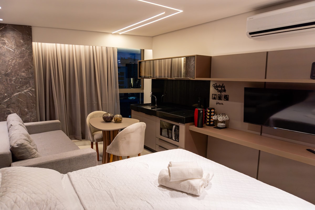 Disfruta de este estudio completo en un piso alto en la mejor ubicación de Boa Viagem, a 2 minutos del mar, una pequeña plaza y a 5 minutos del aeropuerto. Relájese en una cama tamaño king, con un televisor inteligente de 65" y aire acondicionado. Para mejorar la productividad, ofrecemos un monitor de 24" y wifi de 600 mb/s. El edificio tiene una piscina y un salón en la azotea con vistas increíbles, un gimnasio, un minimercado, un estacionamiento cubierto y un conserje las 24 horas para facilitar el check-in. La unión perfecta entre la comodidad del hotel y la practicidad residencial en Recife.