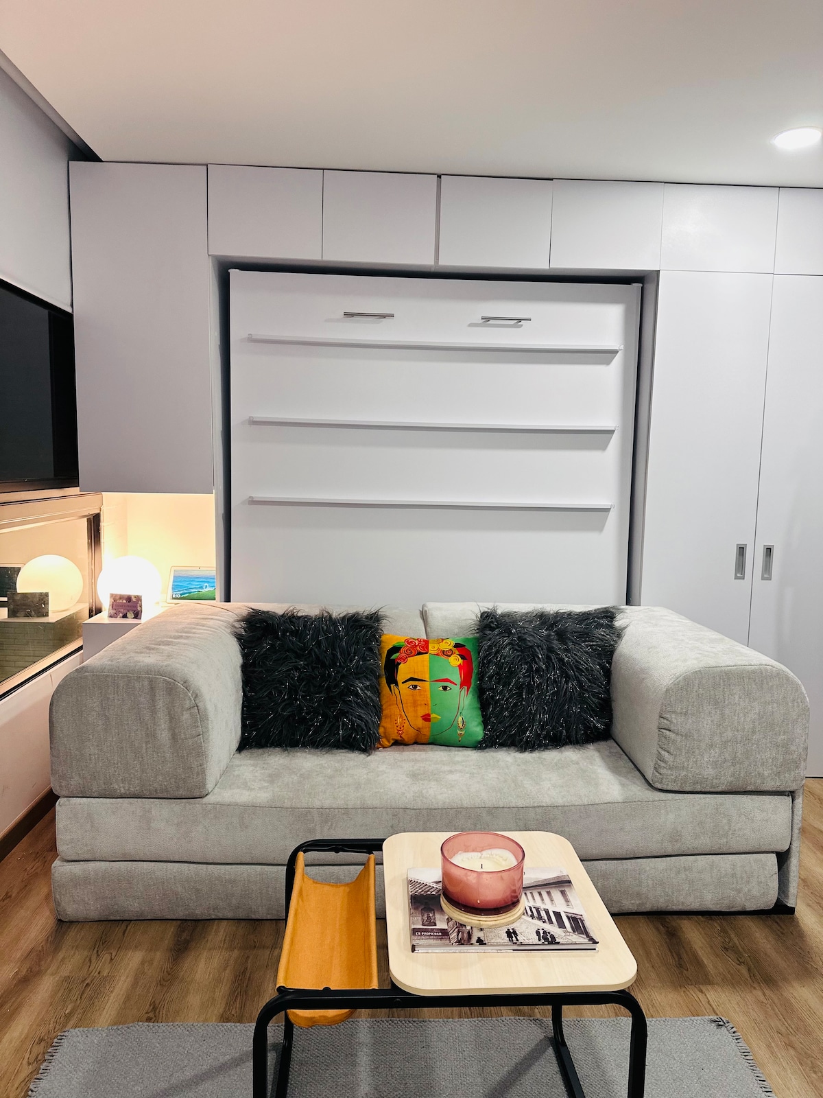 Ideal para viajeros. Vive Bogotá desde este acogedor y funcional espacio de 20 m² en el moderno edificio GO LIFE & WORK. De día, es un estudio versátil con cocina gourmet; de noche, un refugio íntimo con cama doble reclinable. La luz natural y las plantas crean una atmósfera cálida y relajante. Disfruta de terraza 360° con vista a Monserrate, gimnasio y coworking. A pasos de la Torre Colpatria y a 15 minutos del centro histórico. ¡Tu espacio ideal para dos!