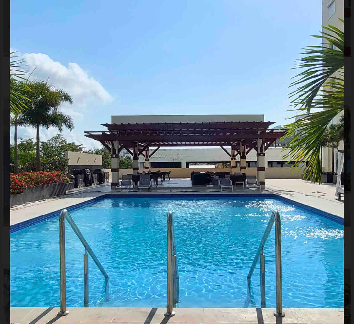 Disfruta de esta relajante experiencia en nuestro apartamento frente al mar, rodeado de amplios espacios de recreación y tranquilidad, este apto es el lugar perfecto para quienes bucan comodidad y belleza en su próximo destino frente al mar. Podrás tener acceso a la playa de Juan Dolió a 5 min caminando. Áreas comunes: • Piscina • Jacuzzi • Lobby • Gazebo • Cancha de voleibol A 10-15 minutos en coche del Malecón, Jumbo, el estadio de béisbol Tetelo Vargas y la Zona Franca.
