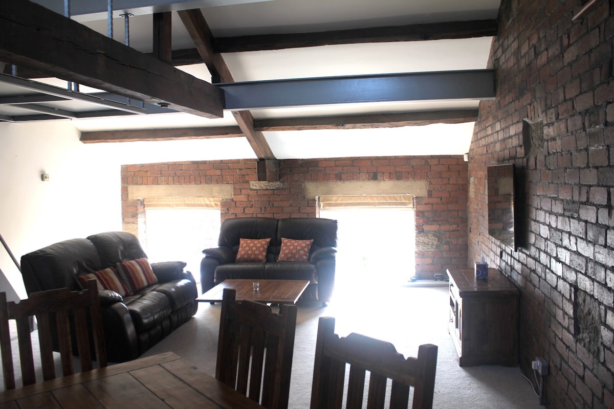 Granero único, espacioso y contemporáneo con vistas insuperables de Saddleworth y más allá. El granero está a 1100 pies en el borde del Parque Nacional Peak con total privacidad, lo suficientemente lejos de todo, ¡pero a poca distancia a pie de dos excelentes pubs locales! ¿A quién no le va a gustar? Si buscas el lugar perfecto para relajarte, con todas las comodidades, dar largos paseos o paseos en bicicleta con vistas impresionantes, este es tu lugar ideal. Espacio de altas especificaciones, bien equipado con todos los elementos básicos. Amplio aparcamiento.