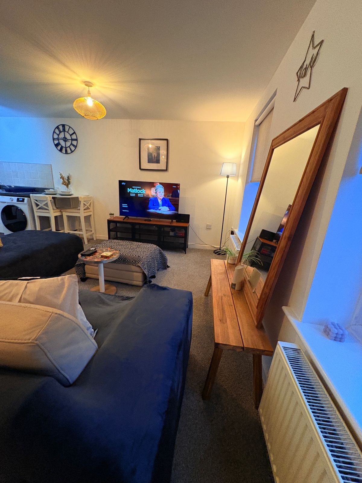 Modern, spacious 1-bed apartment just a 10-minute walk to the town centre, with free private parking and a private entrance. Recently renovated and ideal for short or longer stays, with easy access to shops, restaurants and transport links. Sleeps up to 4 guests with a king-size bed and double sofa bed. Guests enjoy exclusive use of the full apartment, including a large living/dining area and fully equipped kitchen. Early check-in and late check-out may be available on request for an extra fee.