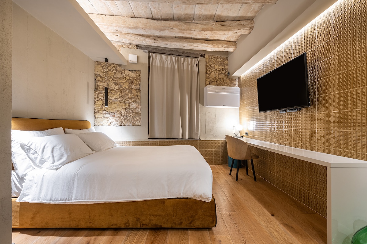 Habitaciones con un diseño refinado y un ambiente único, equipadas con todas las comodidades, vestidor y baño privado. Los huéspedes tienen a su disposición una zona de entrada común estudiada hasta el más mínimo detalle. La ubicación es muy céntrica, dentro del antiguo barrio histórico de la Marina, entre el puerto de Cagliari y el barrio de Castello. A pocos pasos se puede disfrutar del patrimonio histórico y religioso, ir de compras y sentarse a degustar productos típicos en uno de los muchos restaurantes de la zona.