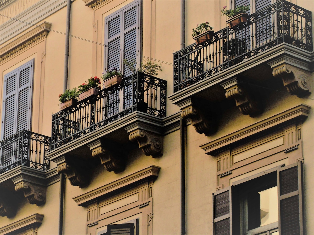 Casa in stile liberty alla stazione centrale di Palermo, la casa è grande, comoda e luminosissima dotata di 4 camere da letto3 doppie e una tripla, tre bagni con doccia e vasca, lavatrice, salone, ingresso, grande cucina attrezzata, lavastoviglie, dotata di aria condizionata e balconi in ogni camera. Infissi isolanti acusticamente e termicamente. Da casa puoi raggiungere tutte le più belle località della Sicilia, con bus, treni, taxi. Navetta da e per l'aeroporto su richiesta a pagamento.