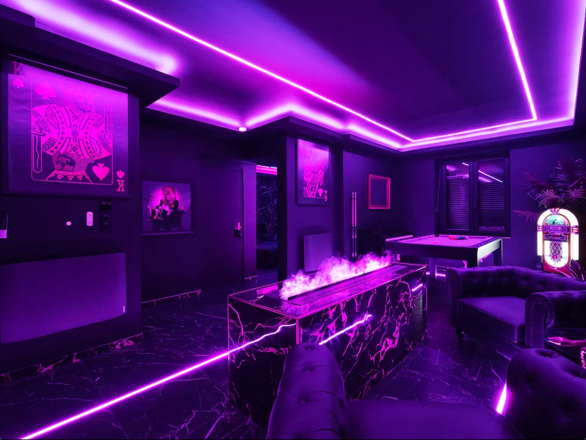 Bienvenue dans notre Cinema Room ! Plongez dans une expérience unique digne des plus grandes salles obscures… mais rien que pour vous ! Notre suite de 80 m², entièrement privatisée et décorée sur le thème du cinéma, vous accueille pour une escapade inoubliable entre détente, confort et films. Avec son écran géant, son système son grandiose et son ambiance cosy, c’est l’endroit rêvé pour les cinéphiles comme pour les amoureux en quête d’originalité.