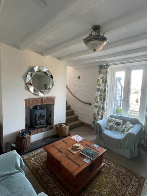 Nuestra propiedad es una cocina/sala de estar de planta abierta con un dormitorio, ducha e inodoro arriba. El dormitorio tiene altura restringida a un lado, como se ve en las fotos. En el exterior hay una zona empedrada, junto a un carril tranquilo, con un banco para tomar el sol de la mañana. Tenemos la suerte de tener aparcamiento seguro fuera de la carretera para el coche de un huésped en nuestra unidad cerrada. Mevagissey es un encantador pueblo de pescadores con su pintoresco puerto en funcionamiento, calles estrechas, restaurantes, pubs y tiendas, a 4 minutos a pie.