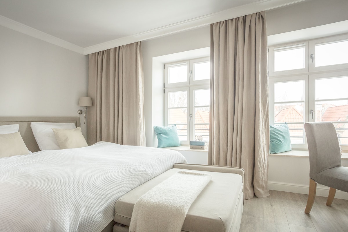 Nadmotławie 13 is the perfect choice for a very pleasant weekend in Gdańsk for two or a family with a child. The apartment, despite its small size, is 30m2, will meet the requirements of the most demanding. Downtown Apartments combine hotel-quality standards with the comfort of a private home. Guests are provided with crisp white bed linen, a set of pillows, a selection of toiletries, and a welcome package including coffee, tea, and basic spices.