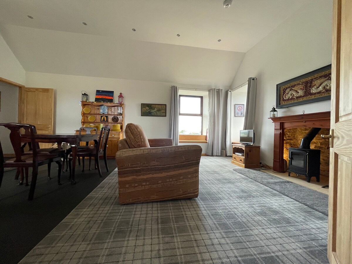 Una escapada verdaderamente única situada en más de 14 acres de su propia tierra, con vistas a las islas Orcadas, a 3 minutos de la ruta oficial NC500. Con características como su propia bañera de hidromasaje para 6 personas, 2 baños, cocina moderna y amplio comedor, y 3 dormitorios dobles más una habitación de invitados adicional con un sofá cama extraíble. En este alojamiento se respira tranquilidad: ¡relájate con toda la familia! A solo 15 minutos de John O'Groats y Dunnet Beach. También tienes la oportunidad de presenciar las espectaculares luces del norte (Aurora) en la ocasión adecuada.