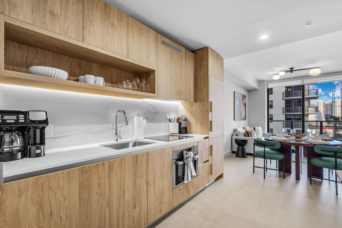 Una residencia contemporánea de 2 dormitorios/2 baños en un edificio recién entregado, diseñado para la vida moderna de Miami. Los interiores luminosos, las vistas abiertas de la ciudad y la cálida luz del atardecer crean un ambiente refinado y relajado desde la mañana hasta la noche. Un alojamiento ideal tanto para el ocio como para el trabajo, perfectamente ubicado para acceder sin esfuerzo a la ciudad. Desde atracciones icónicas hasta conexiones directas de tren a través de Brightline y Miami-Dade Metrorail.