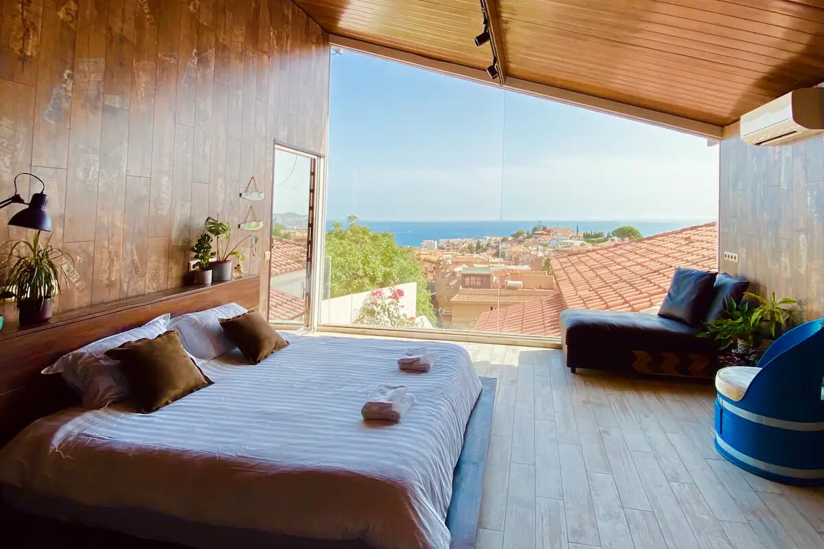 Este apartamento único tiene su propio estilo. Este lujoso estudio cuenta con increíbles vistas al mar a través de una pared de cristal de más de 4 metros de largo. Aprovecha el fantástico clima de Fuengirola en esta casa con cocina exterior privada. Disfruta de tu café de la mañana en la barra de la cocina con vistas al mar y dirígete a la playa (12 minutos a pie) o relájate junto a la piscina. La parada de autobús L5 está a 150 metros. Este lugar cuenta con un espacio de oficina y wifi de 300 Mbps superrápido.