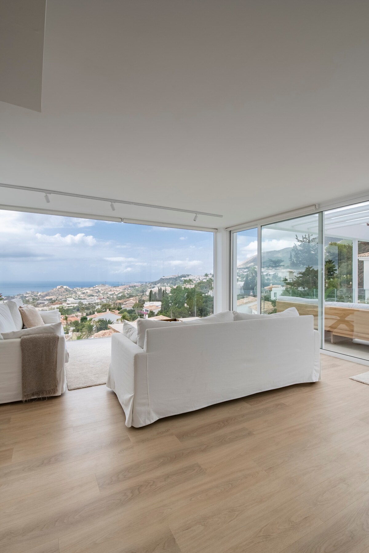 Arpa Eolica - Stunning spacious and imposing 4 bed Andalusian Villa with views down the valley to the coast at the top part of upmarket Valtacado. There simply isn’t a villa with better views or position than this in the whole of the Mijas area. The villa must be seen to be fully appreciated. A luxurious refurbished Spanish villa with every modern touch and only an 8 minutes drive to Mijas Pueblo or 15 minutes to the beach. The property has been stylishly furnished with a nordic twist.