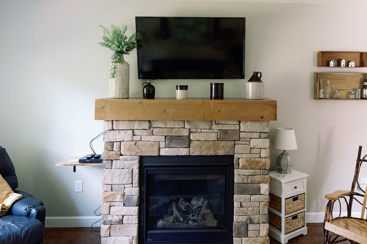 Home has fireplace, kitchen, fire pit, 6 mile-Lanc