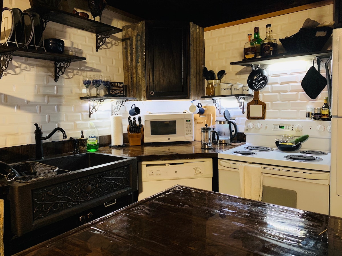 ¿Buscas una escapada tranquila al campo? 7W Guesthouse es la casa de campo perfecta para desconectar y reponer fuerzas. Construida a principios de la década de 1900 y renovada en 2022, no hay mejor lugar para disfrutar del famoso cielo estrellado de Texas. Una cocina completa viene con electrodomésticos nuevos y una isla para comer. Los 3 dormitorios tienen una cómoda cama tamaño king y el principal tiene un baño privado. Un gran patio trasero con chimenea completa esta increíble escapada del bullicio. ¡Ven a disfrutar del sol de Texas en la casa de huéspedes 7W!