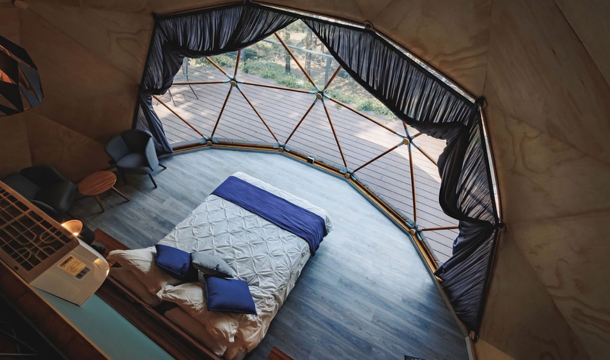Woodscape es un espacio eco-luxury en el bosque que ofrece una experiencia de hospedaje distinta: naturaleza viva, privacidad, confort y experiencias auténticas, lejos del ruido urbano. Aquí el lujo es el espacio, el silencio, el fuego, el bosque y el cuidado en cada detalle. Domo geodésico eco-luxury inmerso en el bosque, con chimenea, calefacción y terraza privada. Una experiencia única de confort, naturaleza y desconexión total cerca de la CDMX.