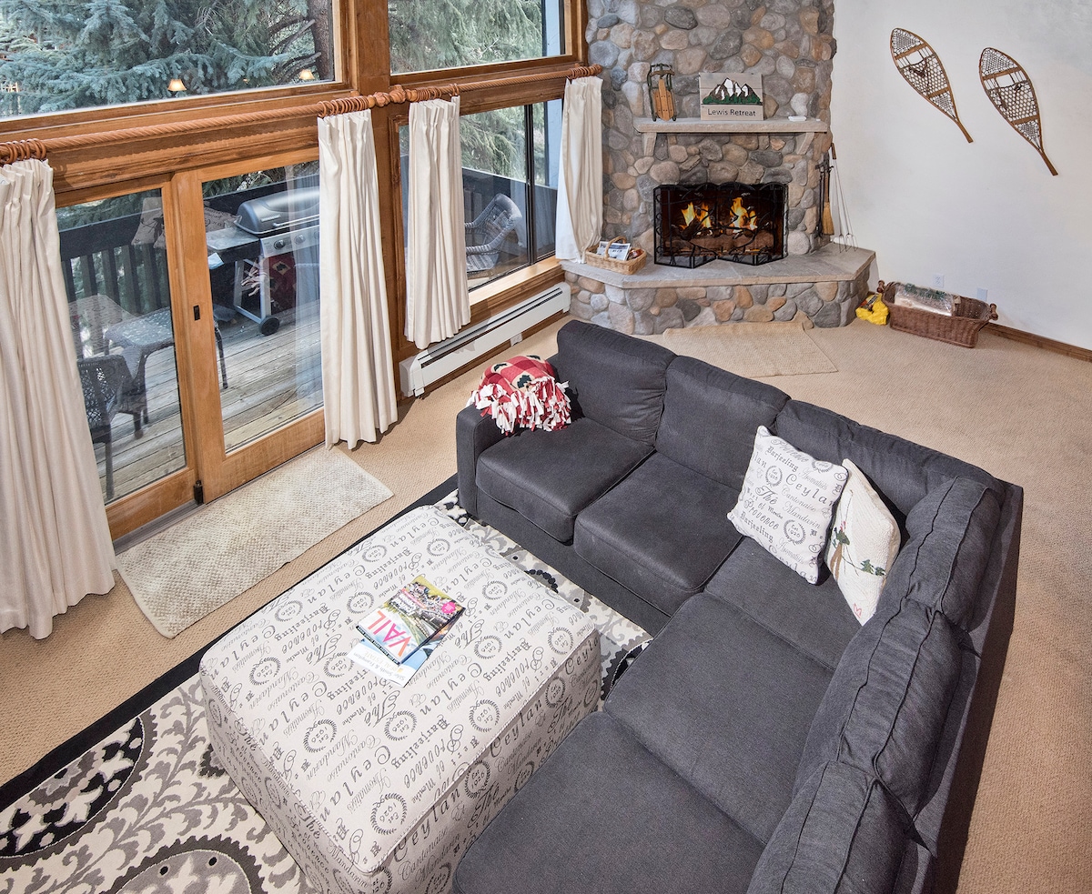 Descubre la joya escondida de East Vail: una cabaña privada de 2 dormitorios ubicada junto a un tranquilo arroyo. Relájate en una cama tamaño king, crea una cocina totalmente equipada y relájate con un televisor de 55pulgadas. Barbacoa en la amplia terraza. Súbete al autobús gratuito Vail para acceder al pueblo y a la montaña. Encuentra lavadora y secadora para mayor comodidad. Disfruta de rutas de esquí legendarias, senderismo y ciclismo. Disfruta de impresionantes vistas de álamo, Gore Creek y montañas desde cada ventana. Los propietarios han equipado este refugio pensando en tu equipo.
