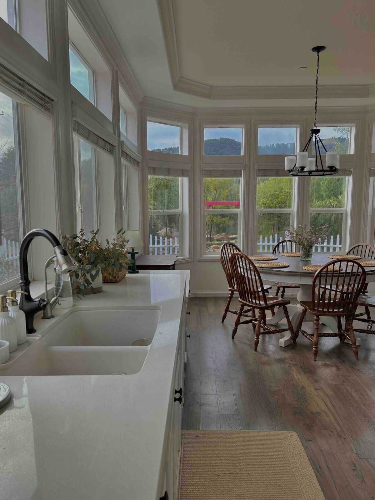 Hermosa granja en 8 acres en la parte superior del valle de Ojai. Perfecta para una escapada romántica, un lugar tranquilo para escribir o un refugio de senderismo de primera, con una hermosa cancha privada de tenis/pickle ball/baloncesto, barbacoa y chimenea, lavandería, cocina totalmente equipada con elementos esenciales para hornear y cocinar. Libros, juegos y juguetes para que disfruten niños y adultos. Televisores en ambos dormitorios. Te invitamos a disfrutar del mejor hogar lejos de casa en un entorno verdaderamente mágico, el hermoso valle de Ojai.