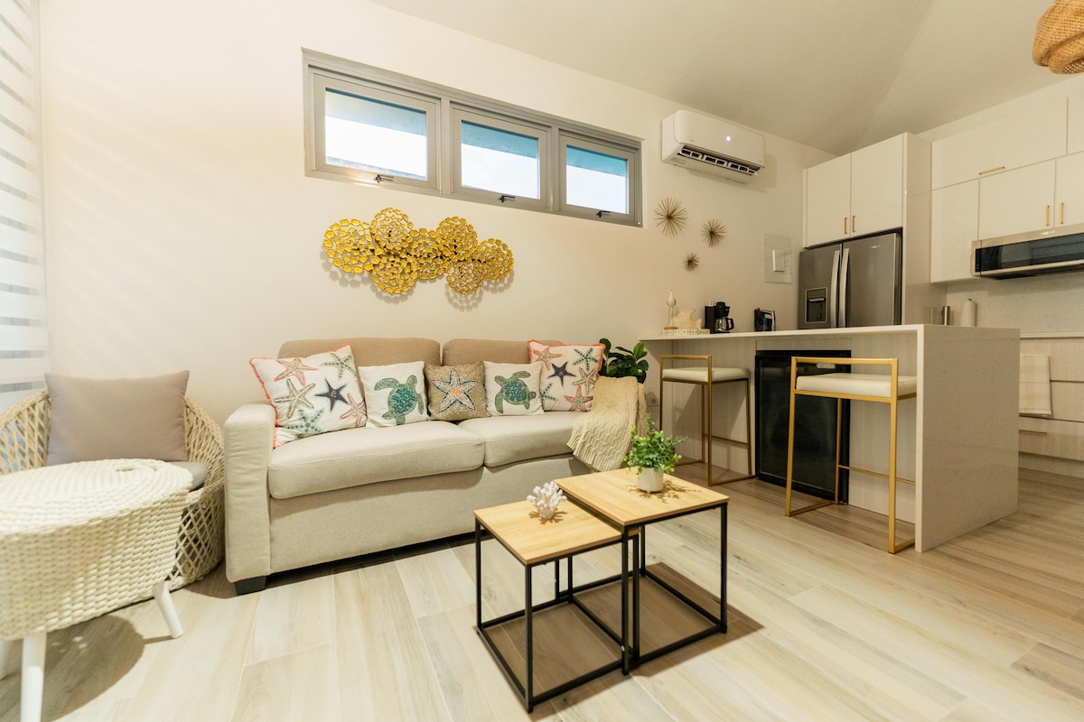 LEE TODOS LOS DETALLES HACIENDO CLIC EN EL ENLACE “Mostrar más >” que APARECE A CONTINUACIÓN. Da la bienvenida a nuestros apartamentos bohemios en Casona. Ubicado a pocos minutos de restaurantes, tiendas y las playas más increíbles de Cabo Rojo. Esta es la unidad 3.6 de los 26 apartamentos en 5 edificios diferentes. ¡Disfruta de la experiencia de alojarse en Orange B Living! IMPORTANTE: Para hacer el check-in el sábado, ponte en contacto conmigo.