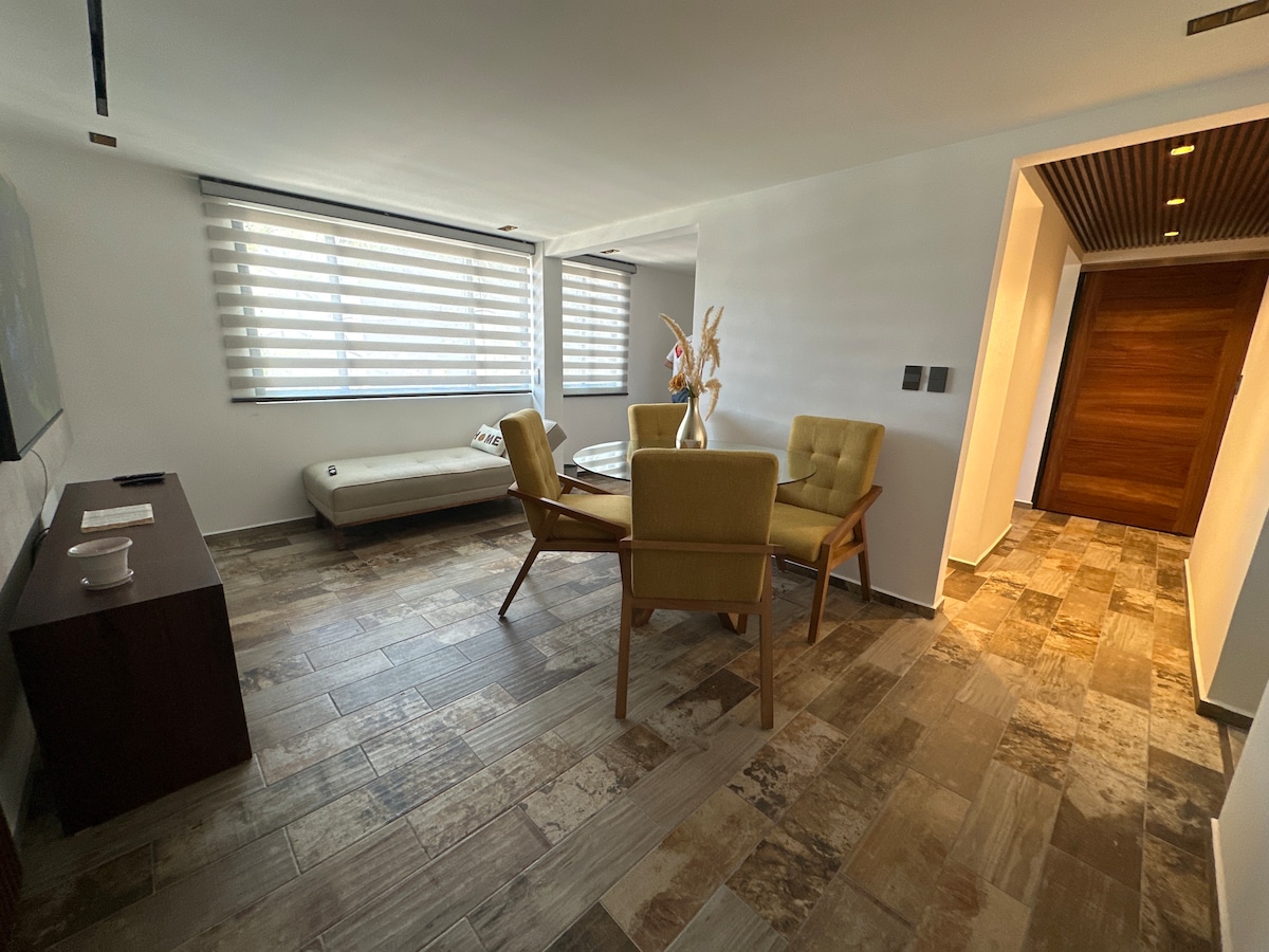 Hermoso Pent House con cocina, cuarto con centro de lavado, baño y medio, comedor en la terraza, TV con sistema Roku, WiFi, estacionamiento. Todo esto en una zona comercial en donde los bancos, supermercado, malls, tiendas, restaurantes, cines, metrobús, etc. están a sólo unos pasos. Cuenta con elevador y vigilancia las 24 horas.