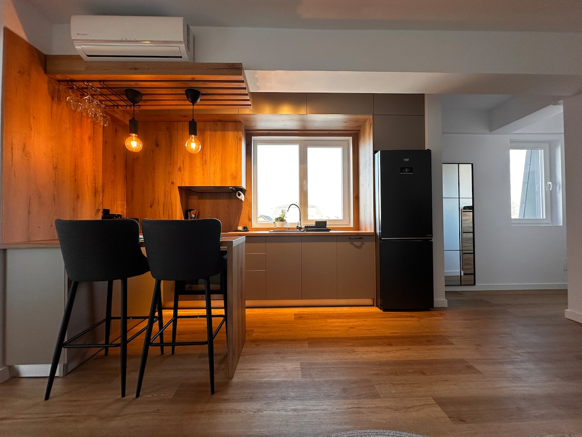 Descubrí un departamento moderno, donde la elegancia se combina con la comodidad, ideal tanto para relajarte como para trabajar. La pieza de resistencia es el patio privado, configurado como un pequeño rincón de la naturaleza, donde podés disfrutar de tu café de la mañana, la tranquilidad después de un día ajetreado o noches agradables al aire libre. Ofrece fácil acceso a restaurantes en el barrio de Albert, al centro comercial Shopping City, acceso rápido a DN1 Bucarest-Brasov y al centro de la ciudad. Instalaciones: wifi rápido, cocina equipada, cama cómoda.