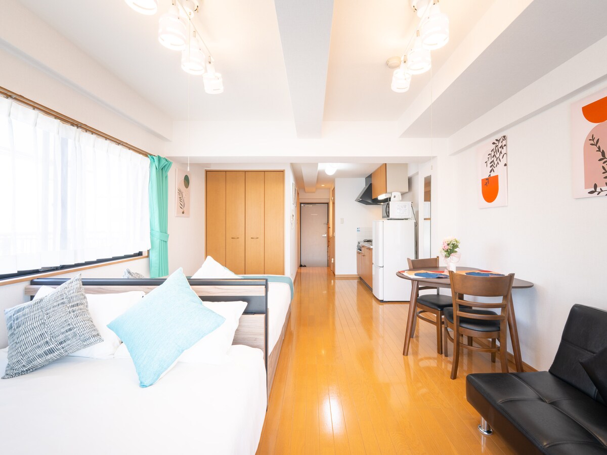 Un departamento limpio y acogedor de una habitación para una mujer, convenientemente ubicado a solo 1 minuto del metro y la parada de autobús. Hay tiendas abiertas las 24 horas cerca. La habitación incluye utensilios de cocina, una olla arrocera y una cama semi-doble Sealy para un sueño cómodo. También hay 3 lavadoras secadoras en el edificio. La estadía máxima es de 180 días al año, así que te recomendamos que reserves con anticipación. Esto se reinicia cada abril. Precios actualizados para mantener la calidad: desde 5500 JPY por noche en 2026, con posibles aumentos leves debido a la inflación de Japón.