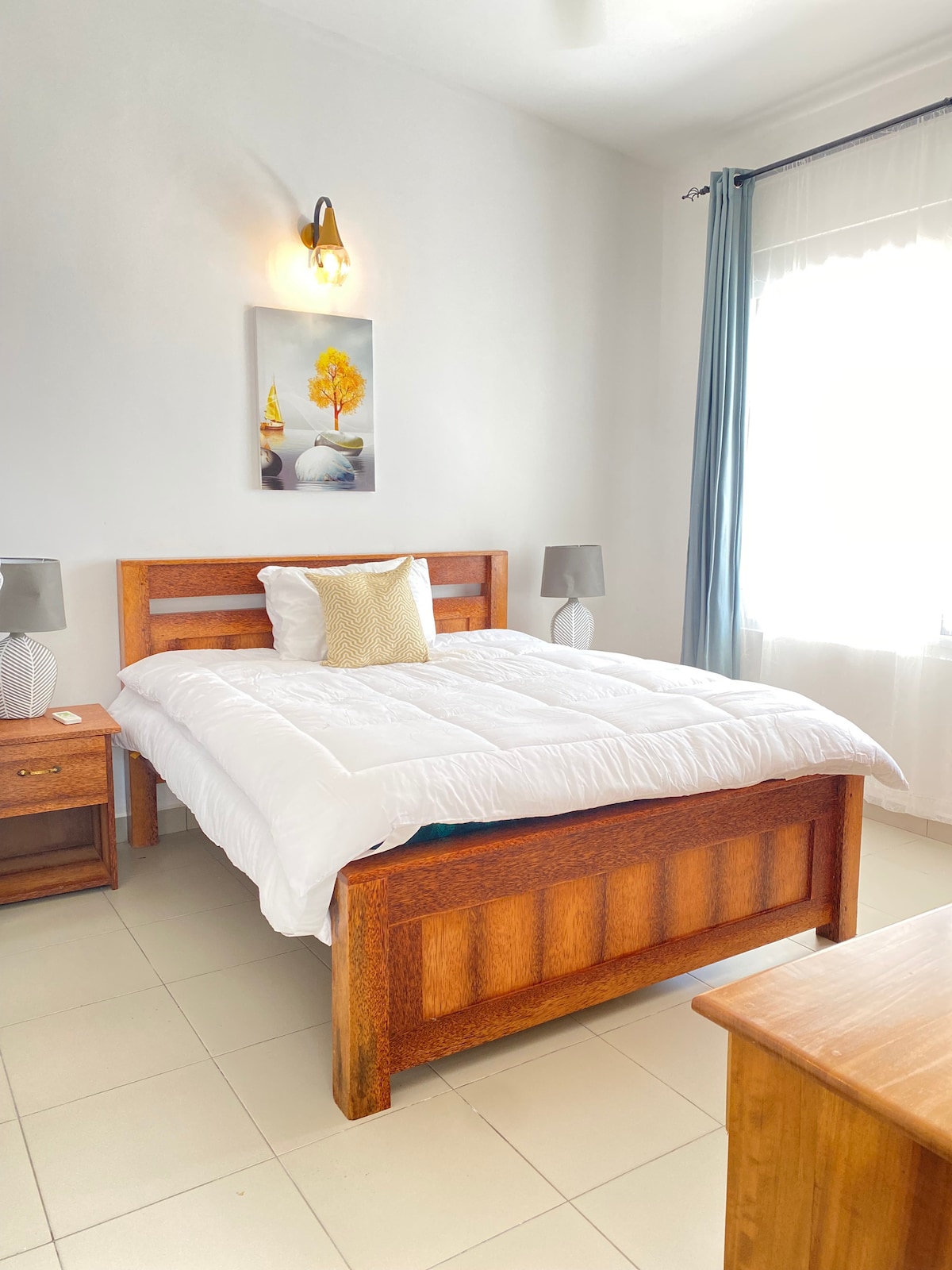 Casa de lujo privada a solo 10 minutos en auto de Stone Town y las playas locales. A 5 minutos en auto del Aeropuerto Internacional de Zanzíbar. A menos de una hora en auto de las playas de la costa este/ norte de Zanzíbar. 4 dormitorios, dos de los cuales están en suite, vestidor en el dormitorio principal. Todas las habitaciones tienen aire acondicionado. Cocina totalmente equipada, comedor y salas de estar. Aparcamiento privado y garaje. Podemos ayudarte a organizar el traslado desde/hacia el aeropuerto, alquilar un auto, con o sin conductor privado.