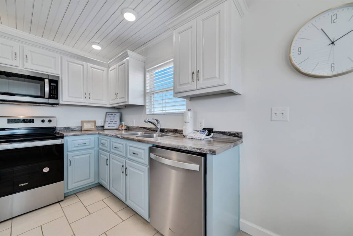 The upgraded kitchen features granite counters and lots of prep area for those family vacation meals. The master bath has a soaking tub with a separate walk-in shower. Secondary suite has a King guest room with private bath. The third guest room has two bunks (twin over full). Pier is shared with our neighbor to the south, it is NOT a community pier. Enjoy the private beach, which is ideal for the kids and pups alike. There is a fenced kennel for the pups.