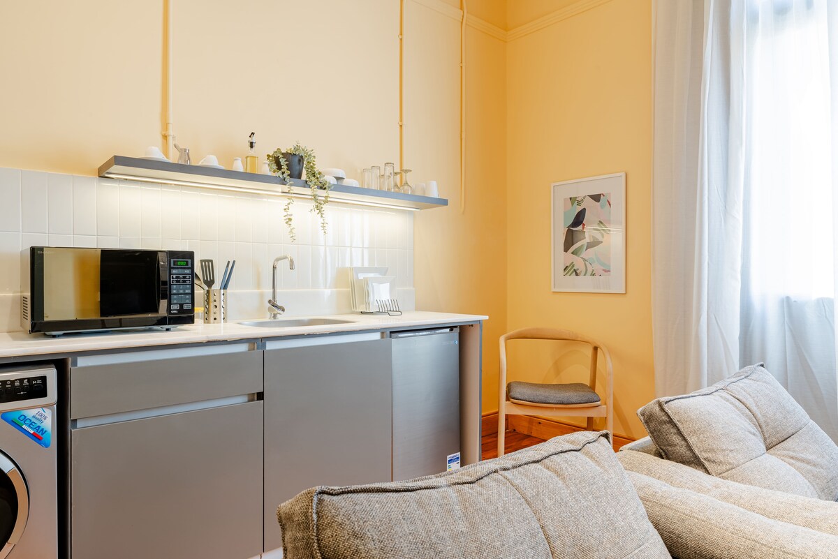 Te damos la bienvenida a tu estadía perfecta en la ciudad: un departamento tipo estudio acogedor, limpio y cuidadosamente diseñado, con una cómoda cama tamaño king y una sala de estar acogedora. El estudio tiene vistas a un antiguo palacio de estilo inglés que ofrece una vista tranquila pero pintoresca de la arquitectura histórica. Salí y te encontrarás en el corazón de una calle animada rodeada de algunos de los mejores restaurantes, cafés y lugares locales que la ciudad tiene para ofrecer, todo a poca distancia.