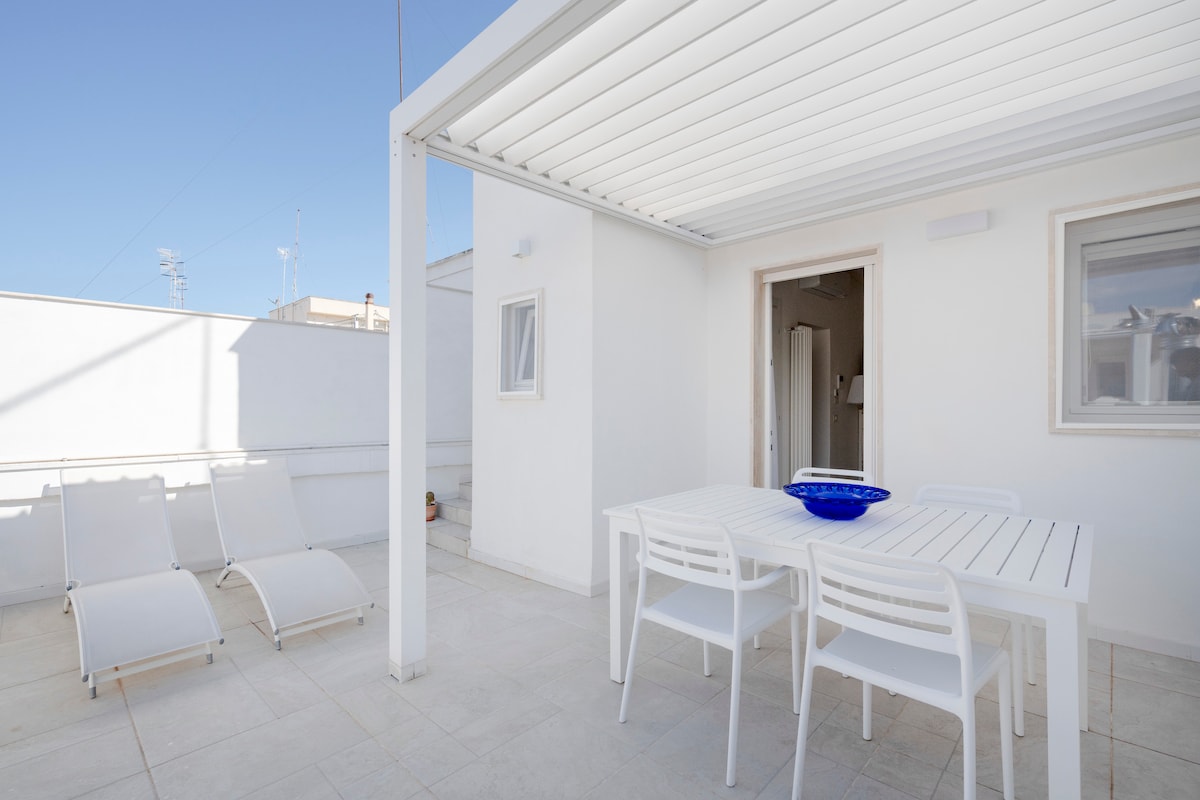 Encantadora residencia ideal para parejas, con una gran terraza privada, en el corazón de Polignano. Gracias a su ubicación estratégica, es ideal tanto para viajeros de negocios como para aquellos que quieren explorar Apulia. - Estacionamiento privado gratuito, a 900 metros del departamento. - A 15 minutos a pie de la estación de tren de Polignano. - El restaurante “Grotta Palazzese” y el “Lama Monachile” están a pocos pasos. - Ubicado en una zona bien comunicada, con restaurantes y cafés cercanos.