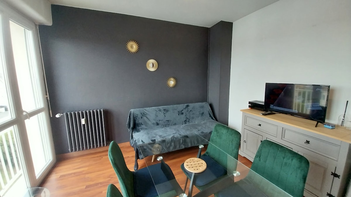 Para unos días, una semana o más...para disfrutar de Caen y sus alrededores, ponemos a su disposición un apartamento tipo T2 de 37 m2 totalmente renovado (2019) y equipado, con capacidad para 4 personas. Orientado al sur y al oeste , le encantará su luminosidad. Agradable y funcional, consta de una sala de estar, un dormitorio, un baño con ducha y una cocina totalmente equipada. Estaremos encantados de recibirle, ¡Bienvenido! Aurélie y Ludovic