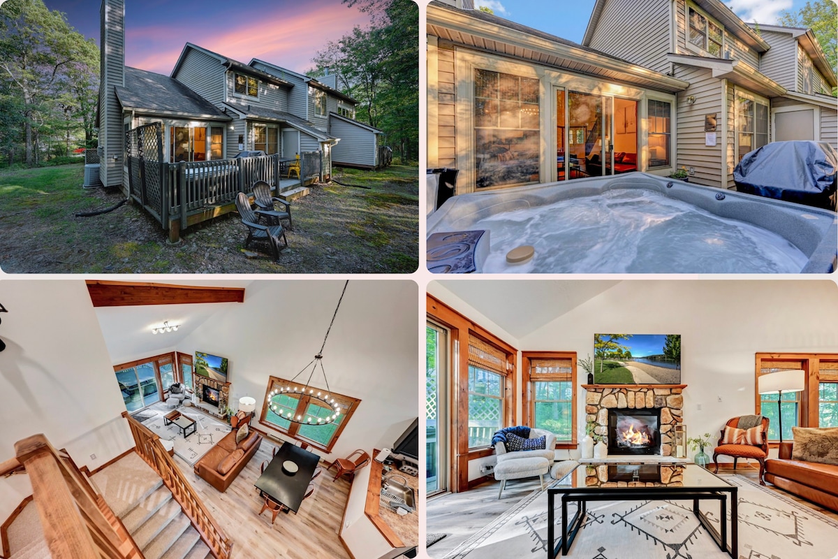 Refugio de 4 dormitorios en Pocono • Retiro con jacuzzi y sala de juegos