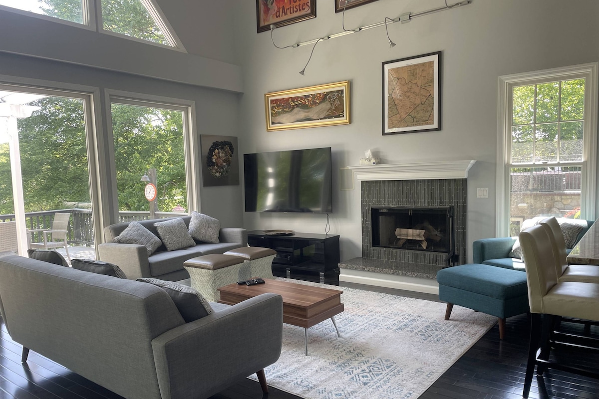 🛏️2 king, 2 camas individuales, barbacoa, chimenea, chimenea, casa entera de 1550 pies cuadrados 🅿️🛜 Escondida al final de una calle tranquila, situada en más de 3acres de exuberante tierra boscosa, nuestra casa es la mezcla perfecta de aislamiento y comodidad. Con un bosque como patio trasero y RT34 a un minuto de distancia, puedes equilibrar fácilmente tu deseo de naturaleza y aventura con la necesidad de viajar y desplazarse fácilmente, hacer una corta caminata a un bosque (senderos a pocos minutos) y/o relajarte bajo las estrellas alrededor de una fogata.