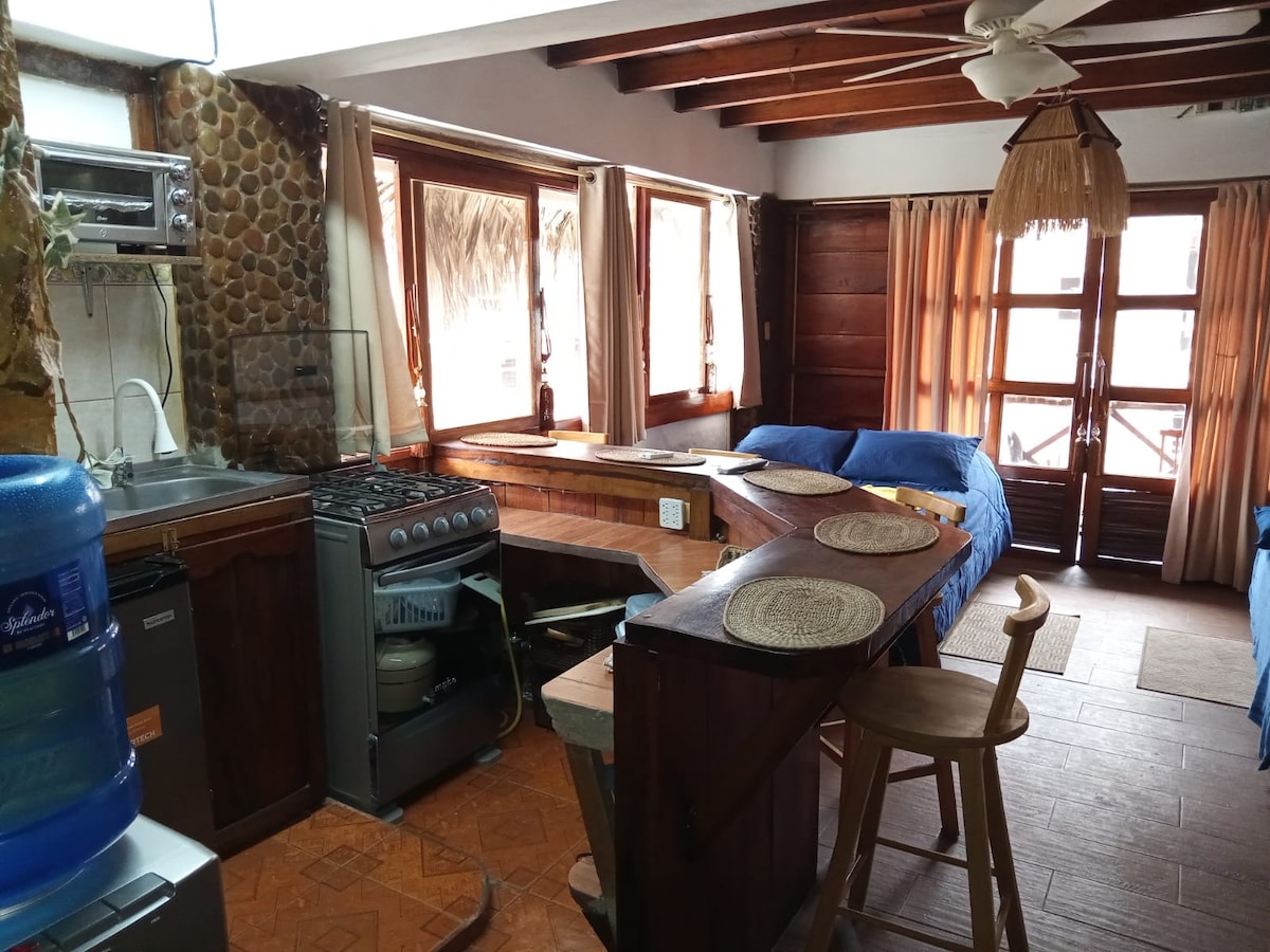 Somos un resort privado frente al mar en la zona tranquila de Montañita. Quédate en este alojamiento único y disfruta del sonido del mar y de la naturaleza. Tenemos 9 cabañas privadas cada una equipada y bien decorada para su mayor comodidad, todas con a/c y baño privado. Estamos rodeados de areas verdes, arboles, palmeras, tenemos una piscina, una area social frente al mar y varias zonas comunes de hamacas. Parqueo, seguridad 24 horas. Ofrecemos servicio de cocina y bar bajo requerimiento.