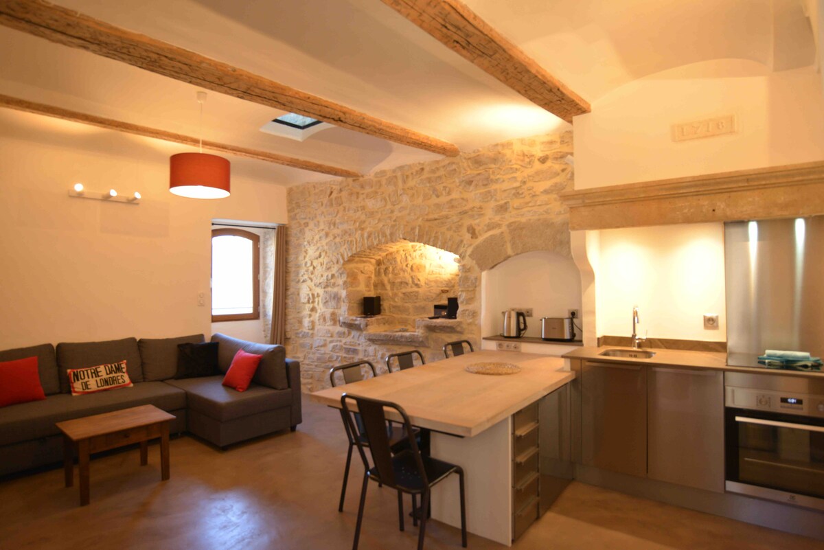 Venga a descubrir nuestra casa de campo reformada con el mayor cuidado: ¡todo lo que la piedra antigua ofrece de más bello, con absolutamente todas las comodidades modernas! En el corazón peatonal del pueblo medieval de Notre Dame de Londres, a solo 5 km del Pic Saint Loup, podrá disfrutar de la frescura de las paredes de piedra y del aire acondicionado en el momento más caluroso del verano, y se sentirá encantado por el crepitar del fuego en la esquina de la monumental chimenea en el momento más frío del invierno. Alojamiento amueblado de turismo de 3 estrellas.