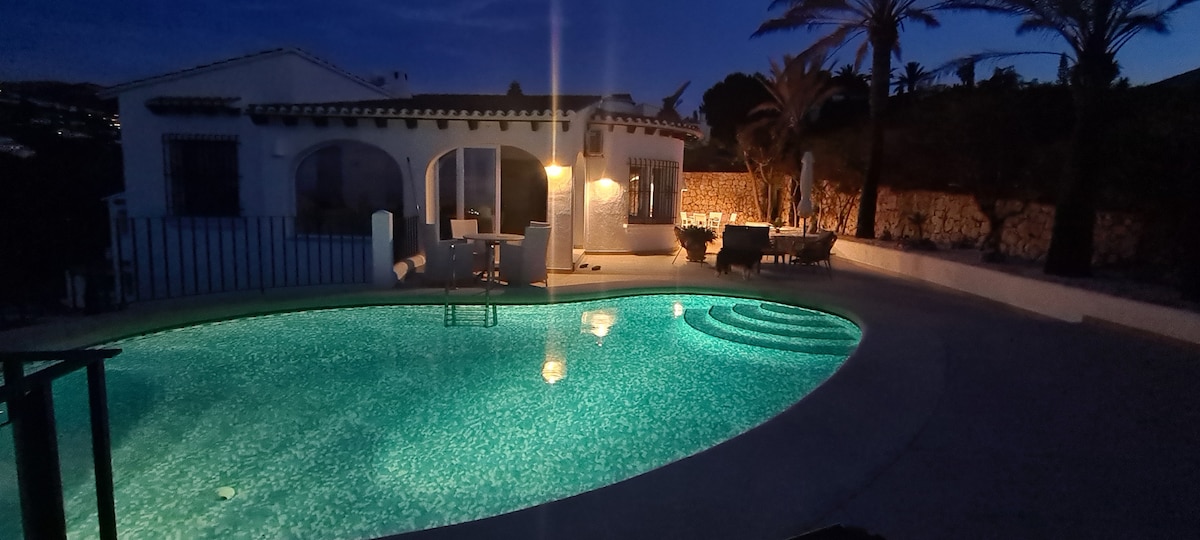 Villa Azahar con wifi, 2 dormitorios, 4 aparatos de aire acondicionado, Chimenea de pellets, 2 baños y piscina privada en Monte Pego cerca de Denia con fantásticas vistas a la hermosa Costa Blanca - Se puede reservar 1 ropa de cama y 2 toallas por € 15 por persona y deben pagarse a la llegada.