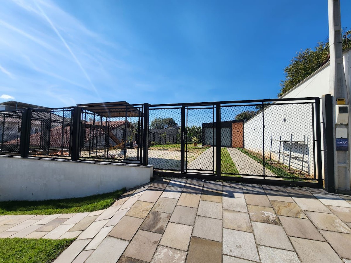 Espaço totalmente privado. Suíte Master da hospedaria Des Steinhsus. Espaço projetado para você que vem a cidade a períodos de trabalho, estudo e a passeio. O espaço conta com uma pequena cozinha com frigobar, cooktop de indução uma boca, chaleira elétrica e micro-ondas. também utensílios de cozinha. Uma cama de casal e um colchão solteiro para terceira pessoa se necessário . Venham conhecer e desfrutar do conforto e comodidade que a casa oferece. E sejam muito bem vindos!