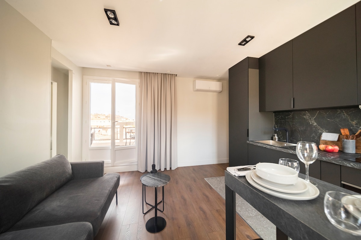 Apartamento con terraza. Céntrico. ❤ ☀ Tren. Aire ☀ acondicionado.