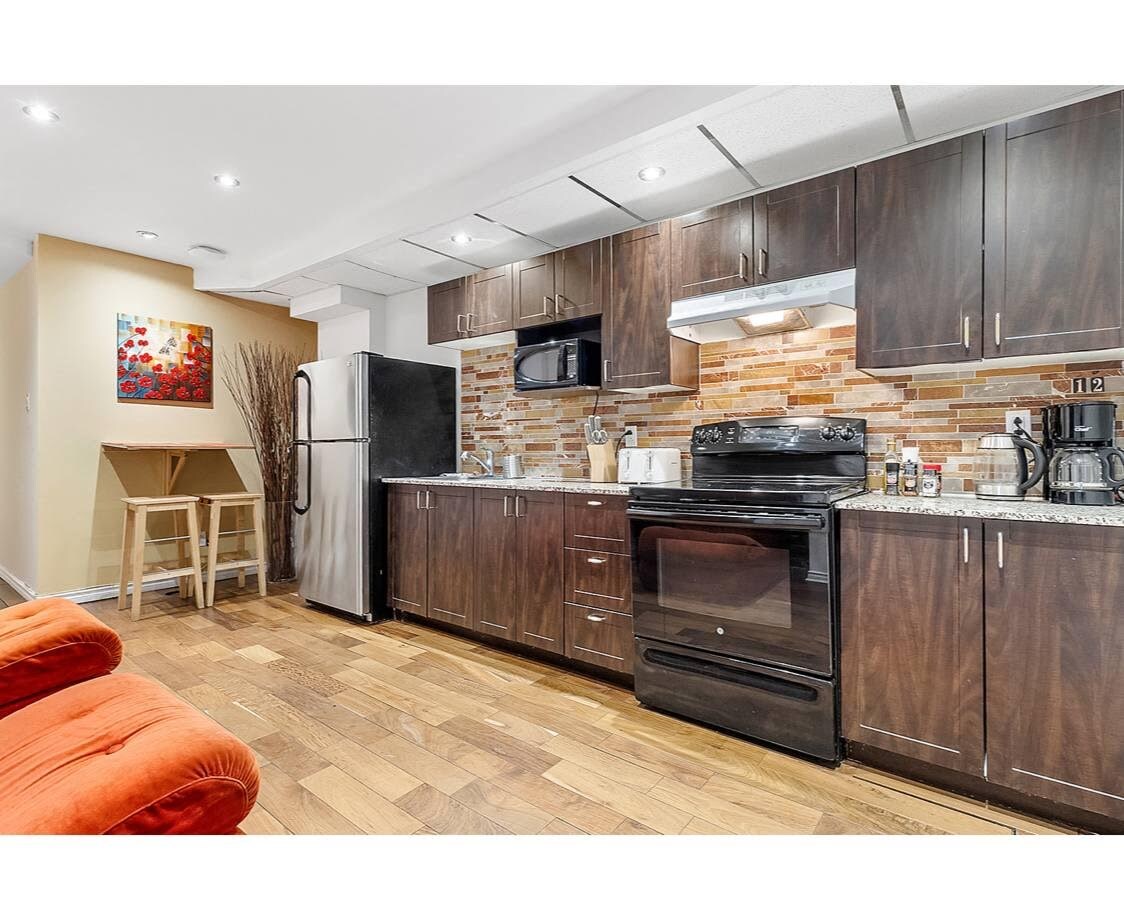 Logement demi sous-sol refait à neuf, chambre fermée, spacieuse cuisine toute équipée (électroménagers neufs avec lave-vaisselle et machine Nespresso) et comptoir de quartz. Plancher chauffant. Salle de bain avec grande douche et belle vanité. Laveuse sécheuse. Grand salon tout équipé. TV avec chromecast. À 400m du métro, parc et commerces à proximité (rue Fleury). 10 min du centre-ville en métro. Stationnement gratuit et facile dans la rue (ATTENTION : INTERDICTION LA SEMAINE DE 10h30 à 12h30).