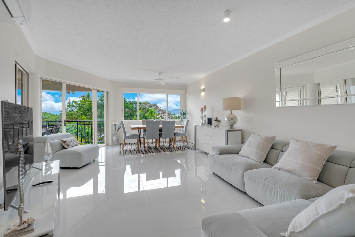 Este es un apartamento de la planta baja casi nuevo, espacioso, independiente y cómodo. Está a 5 minutos en coche del aeropuerto y del centro de la ciudad, y a 50 metros a pie de la parada de autobús. A poca distancia a pie de parques, jardines botánicos, lagos Centenary, paseos por la selva tropical, centro de arte «Tanks», restaurantes, cafeterías y muy cerca del moderno Edge Hill Village y supermercados. Perfecto para 1 pareja o amigos/familias de hasta 4 personas. Una habitación tiene una cama tamaño queen de lujo, la otra tiene 2 camas individuales tamaño king. Vivimos en el primer piso, pero es muy privado para los huéspedes.