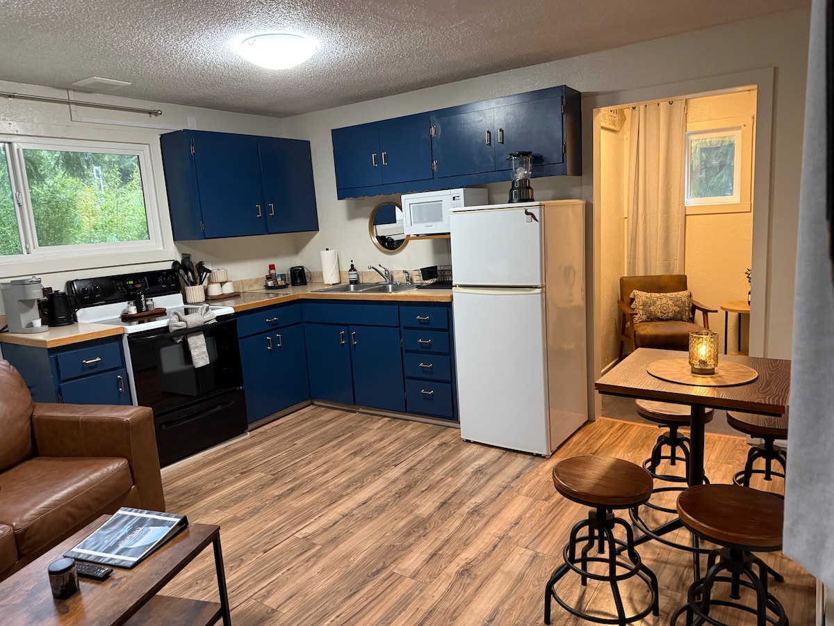 Shadynook Cottages se encuentra a 2 manzanas del corazón del centro de Forks, lo que lo hace cercano a los servicios de la ciudad, como restaurantes y tiendas, y a poca distancia en coche de senderismo, visitas turísticas, búsqueda de objetos en la playa o exploración. La cabaña 1 incluye su propia entrada independiente y una terraza con mesa y sillas para disfrutar. La cabaña 1 fue remodelada a finales del verano de 2020. Cuenta con una cocina totalmente nueva y equipada, suelos/alfombras nuevos, calentador de agua caliente a pedido y su propio servicio wifi.