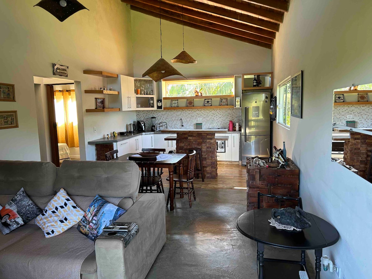 •Refúgio Solar se encuentra en la encantadora carretera Graciosa con hermosas vistas panorámicas de las montañas del mar. •Perfecto para reunir a la familia con tu mascota. • A 60 metros del asfalto y del río São João, con una zona de baño y hermosas cascadas abiertas al público. •Tenemos un lago para la pesca deportiva, el bosque y la plaza del fuego. •Gran balcón con cama y hamacas, bañera vintage, ducha al aire libre y espacio gourmet •Consulta la oferta especial para parejas y la oficina en casa. Durante la semana, fibra óptica neta de 500 MB. •¡Ven a vivir esta experiencia!