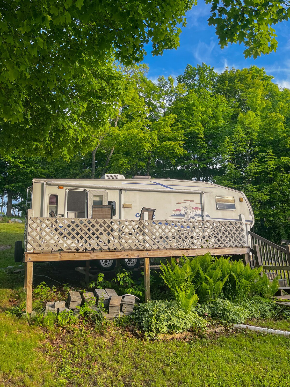 ¡Te damos la bienvenida a nuestra casa rodante Riverside! Disfrutá de una escapada tranquila junto al río San Lorenzo en esta romántica y acogedora casa rodante de 1 dormitorio con capacidad para 5 personas. Caminá por el muelle para disfrutar de las pintorescas vistas de Canadá, cená en la amplia terraza o hacé kayak desde la playa de piedras. Tu estancia incluirá acceso al río y a la orilla del río a través de la propiedad por un pequeño camino de grava. Ubicada sobre la colina, la caravana y el espacio de la cubierta dan paso a hermosas vistas del atardecer.