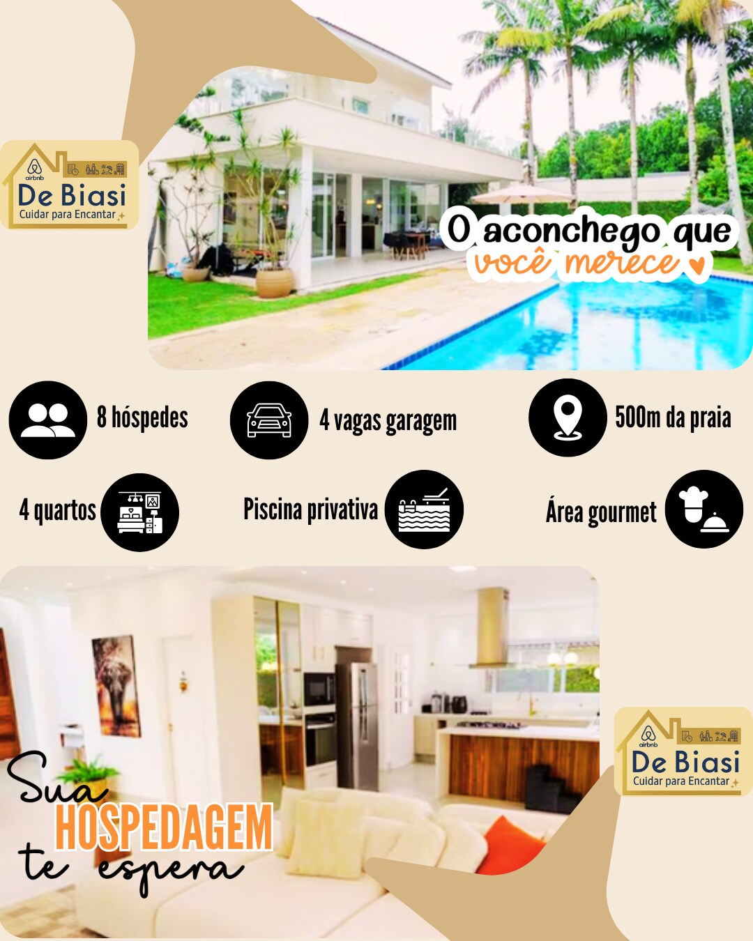 Llamamos a nuestra casa “Entre Águas e Montes: Refúgio Guarujá” por su ubicación y sabroso perfil para parejas y familias. La casa está en una comunidad cerrada ("Condomínio Albamar") a poca distancia a pie del campo de fútbol, la cancha de tenis, el parque y la pista de deportes mixtos. La casa ha sido recientemente renovada e incluye una piscina privada, barbacoa, aire acondicionado (habitación principal), ventiladores de techo en cada habitación y un acogedor balcón con hamaca y arreglos de vida.