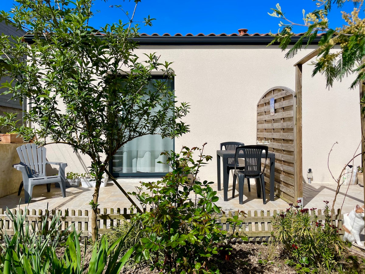 situado a 20 minutos de Le Puy du Fou en un ambiente verde y tranquilo despertado por los pájaros pequeños🐦 se puede disfrutar del jardín accesible terraza mesa para cenar o desayunar. Habitación privada con entrada independiente con su baño y aseo separados reservados solo para los viajeros también accesible por un ascensor para personas con movilidad reducida.. así como un aparcamiento seguro con el cierre de un portal.