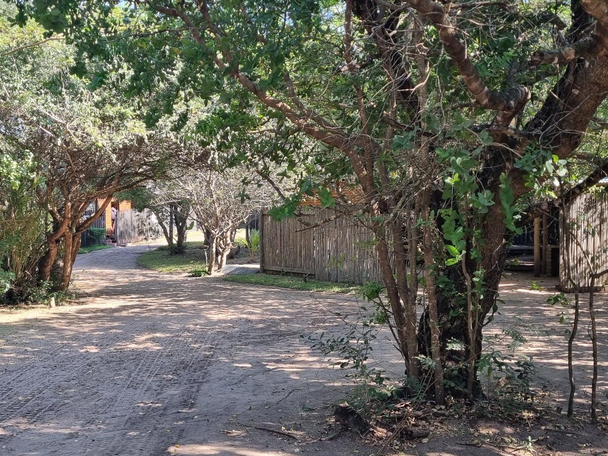 Escápate a nuestro refugio ecológico en Catembe-Nsime, a solo 30 minutos de Maputo. En medio de exuberantes árboles y un bosque de comida tropical, relájate en nuestra acogedora tienda de campaña con cúpula para dos. Disfruta de tés de plantas locales y a poca distancia a pie de la playa cercana. Explora con nuestro cuidador, comparte comidas locales y experimenta la vida rural mozambiqueña. Accede a los autobuses a Maputo fácilmente. Disfruta de la naturaleza con agua, inodoro ecológico y energía solar las 24 horas, los 7 días de la semana. Experimenta la tranquilidad y la vitalidad local en un entorno exuberante y apacible y el canto melódico de los pájaros.