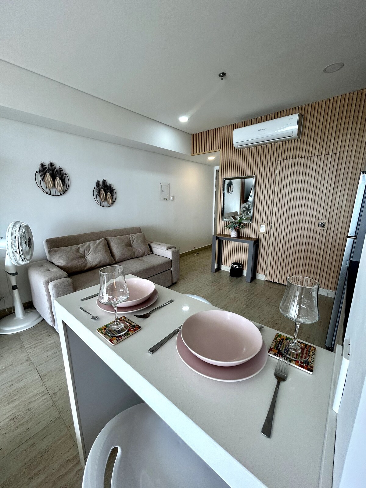 Este lugar tiene una ubicación estratégica ! a 5 minutos del aeropuerto a 12 minutos de la ciudad antigua a 5 min del mar comercios a 5-7 min. terraza con vista panoramica al mar aire acondicionado ducha de agua caliente confortable y moderno,dispone de cama doble y sofacama cocina equipada zona de trabajo wi fi maravillosas zonas comunes como piscina sauna jacuzzi turco parqueadero coworkin servicio recepcion 24/7 servicio guarda equipaje,zona lavanderia a precio moderado. seguridad privada.