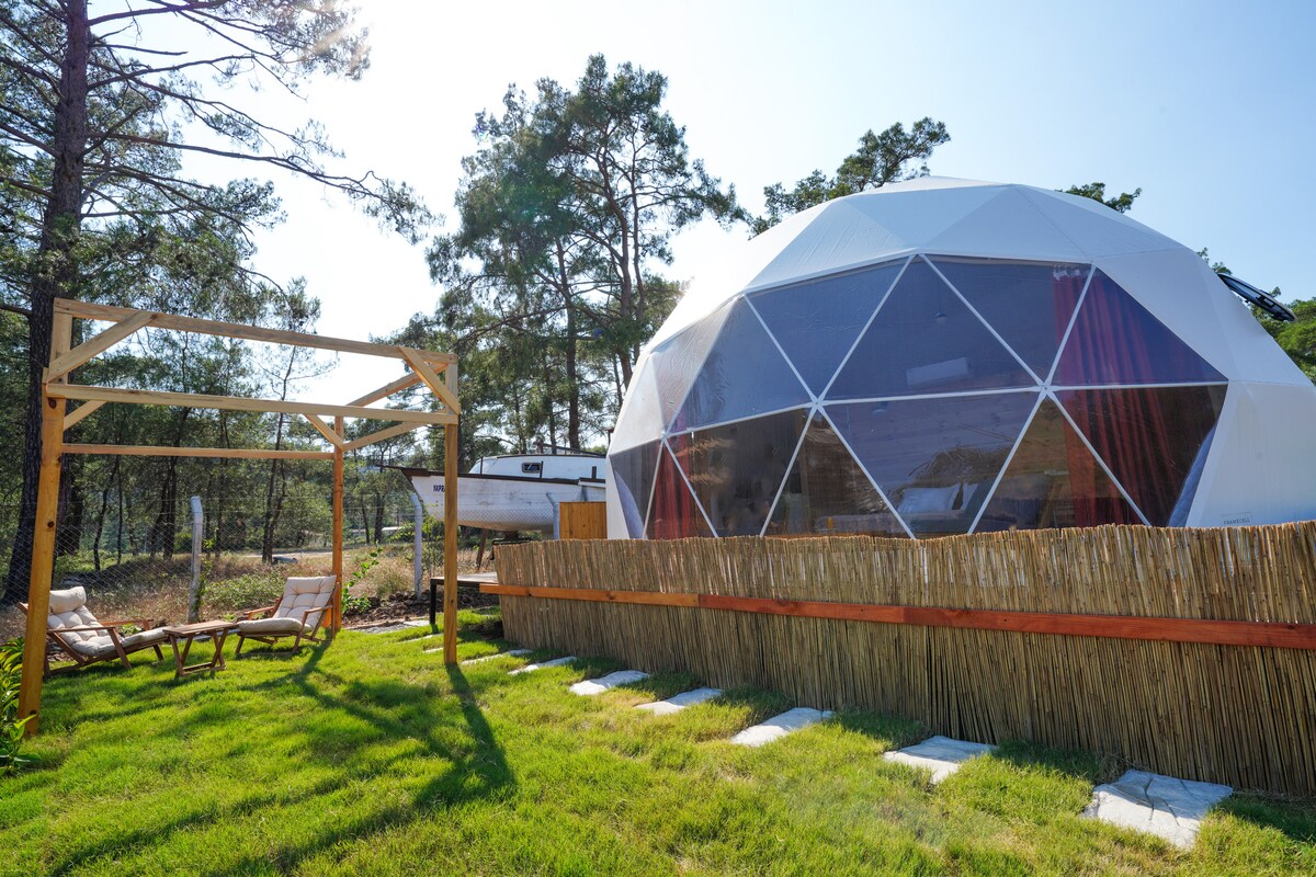 Türkiye'de yeni yeni popülerleşmeye başlayan dome glamping tasarımlı evlerimiz, muhteşem konsepti ile dikkat çekmektedir. Kalkan Çayköy bölgesinde konumlandırılmış olan dome balayı suitimiz, sizler için özel olarak tasarlanmıştır. Modern ve oldukça farklı bir dizayna sahip olan balayı suitimiz korunaklı yapısı ile de dikkat çekmektedir. Alışılmışın dışında bir tatil deneyimi yaşamak istiyorsanız, Kalkan Dome Suites 8 kapılarını siz değerli misafirlerimiz için aralamaktadır.