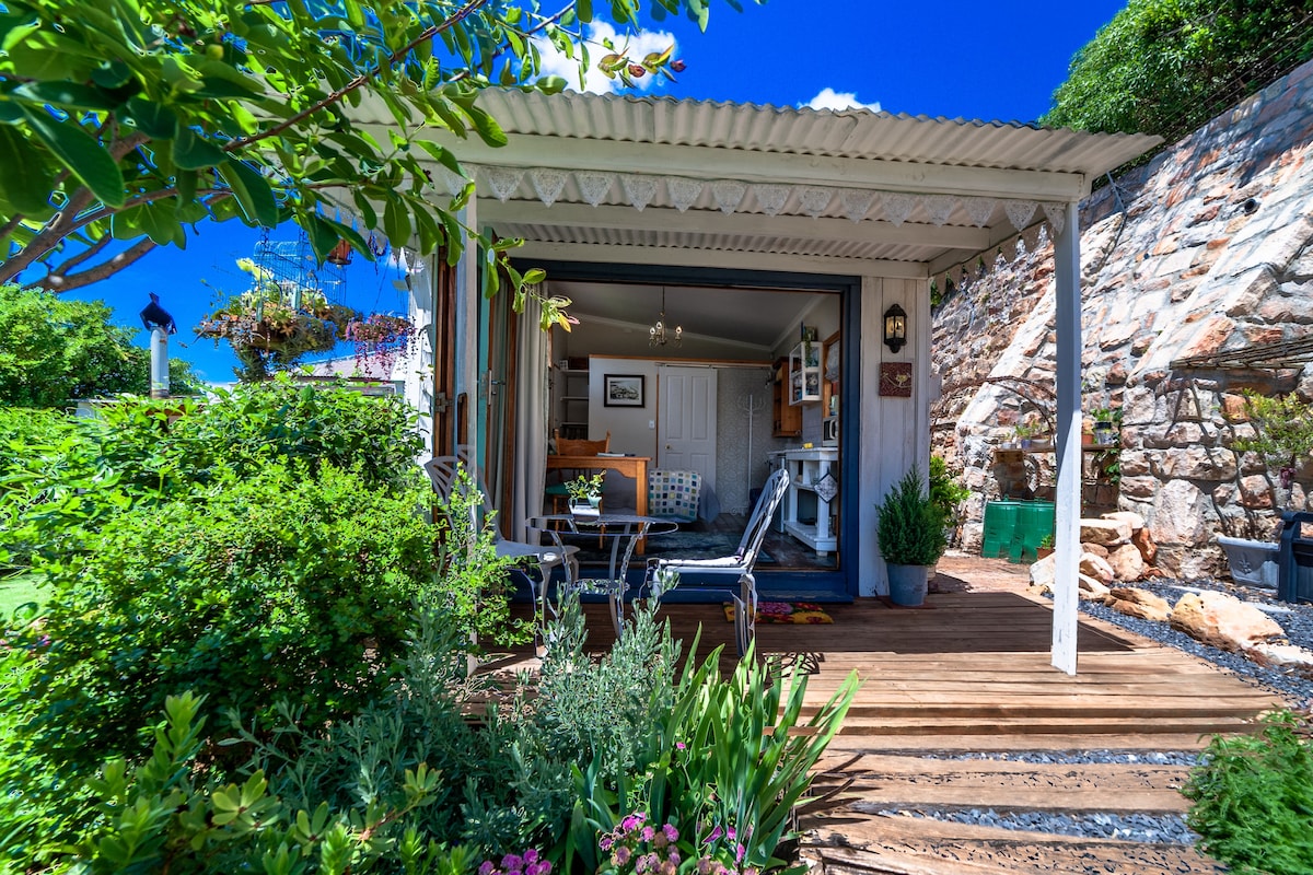 Comfortable cottge set in a beautiful indigenous garden. The cottage has all you need, well equipped kitchen, bathroom, sitting area and a patio that opens up onto the garden and pool which you are welcome to use. This is a perfect space if you are on business or on holiday. We are close to shopping centre's, the vineyards and greenbelt. This cottage is not suitable for children or toddlers.
