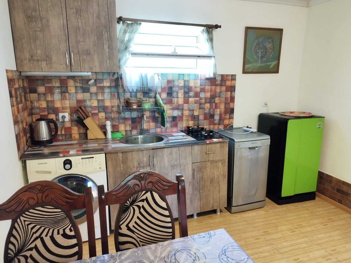 La casa está en el lugar más tranquilo de la ciudad. La casa tiene un patio con flores y un huerto. En la planta baja hay una gran cocina. En el segundo piso hay un dormitorio, un porche con un columpio. Hay manantiales curativos a 500 m de distancia. Cerca del hospital central, tiendas, minibuses se detienen frente a la casa. También dispones de Internet (WI-FI). Puedes utilizar los servicios de un terapeuta de masajes calificado. Por una tarifa adicional puedes pedir 3 comidas al día