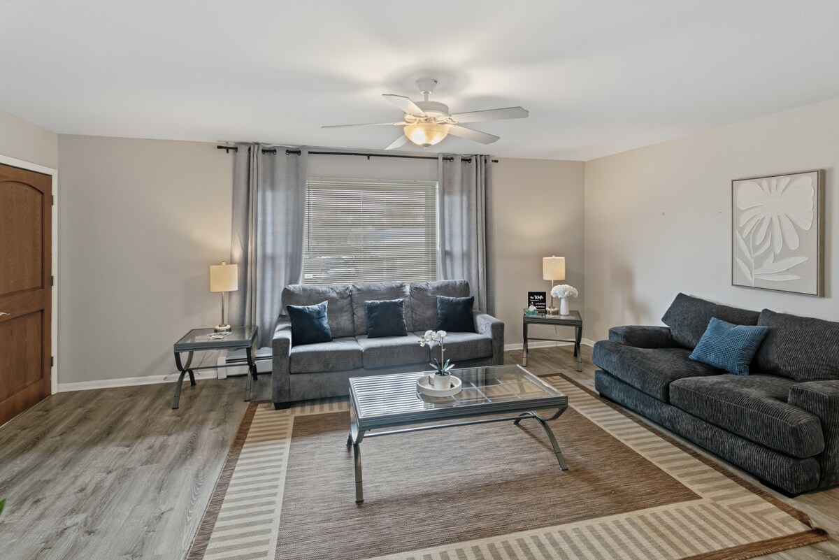 En este alojamiento se respira tranquilidad: ¡relájate con toda la familia! ¡A 20 minutos en coche de la base naval de los Grandes Lagos y a 25 minutos de Great Wolf Lodge! Esta hermosa casa es perfecta para parejas y familias que vienen al condado de Lake para visitar a la familia o asistir a la graduación de la Base Naval de los Grandes Lagos. La cocina renovada está bien equipada y la lavandería en la unidad te hace sentir como en casa. Todas las habitaciones tienen colchones de espuma viscoelástica suave y acolchados. Tendrás acceso a todo el alojamiento a través de un código de cerradura inteligente.