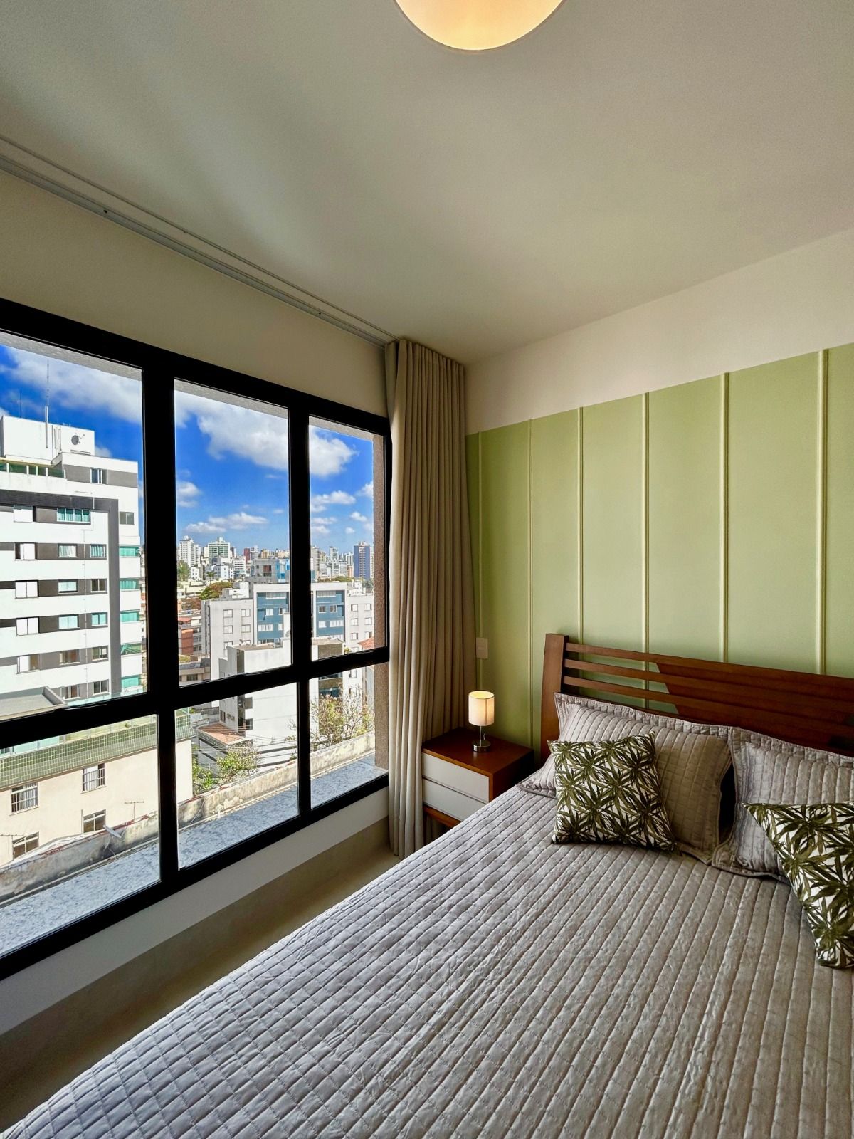 Con 70 m2 , para aquellos que buscan privacidad e independencia . En Savassi, a dos cuadras de Praça da Liberdade y Shopping Pátio Savassi. Con una suite, baño social reversible, sofá cama para los huéspedes, ventana de la suite antirruido, habitación con aire acondicionado y habitación, wifi 300 megas, smartv de 75 pulgadas, Hometheater, cocina completa, microondas, servicio de habitaciones, camarera, valet, piscina , gimnasio, sauna, restaurante y conserje las 24 horas.